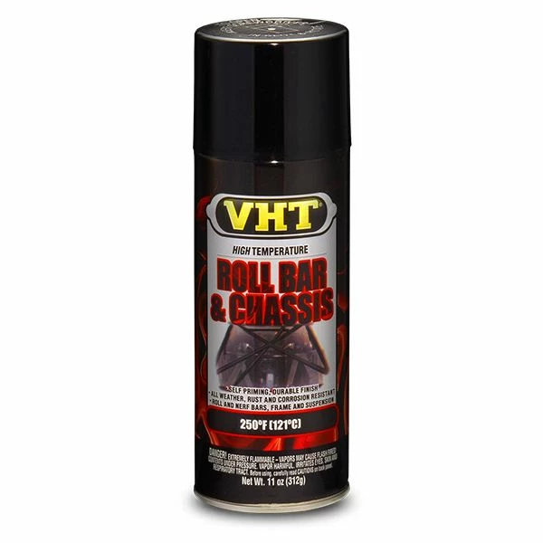 VHT Roll Bar & Chassis Paint is a one step epoxy coating that does not require primer. It gives the appearance of a tough baked-on finish that is chemical, corrosion, rust and salt resistant.